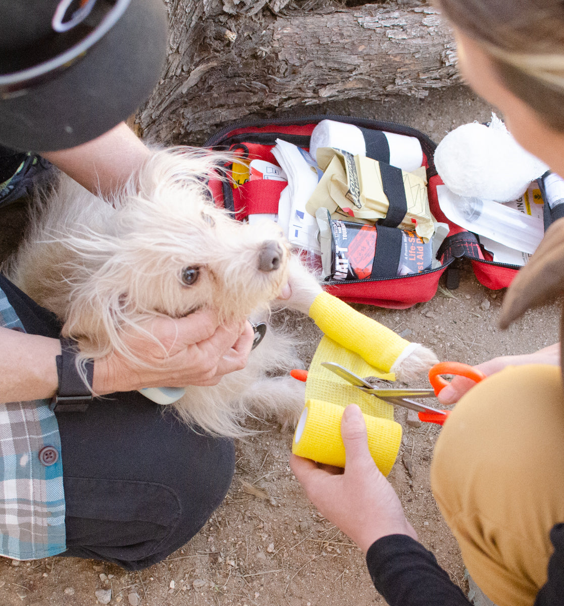 A cut paw pad, a burn injury, heatstroke, a broken leg, a fall, or worse; emergencies happen. When they happen to our canine best friends, we owe it to them to be properly prepared and capable of intervening. No matter where your adventures take you and your dog, the Far Fetched Adventures K9 First Responder Course provides you with the knowledge to recognize emergencies and the skills to administer the necessary pre-hospital, basic first aid they need until you can get them to their veterinarian.